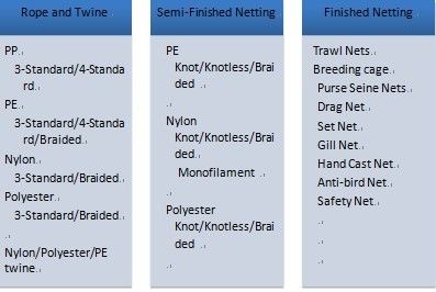 Applicable to ocean seine and trawl (bag purse seine) sport net and bathing nets, etc. |